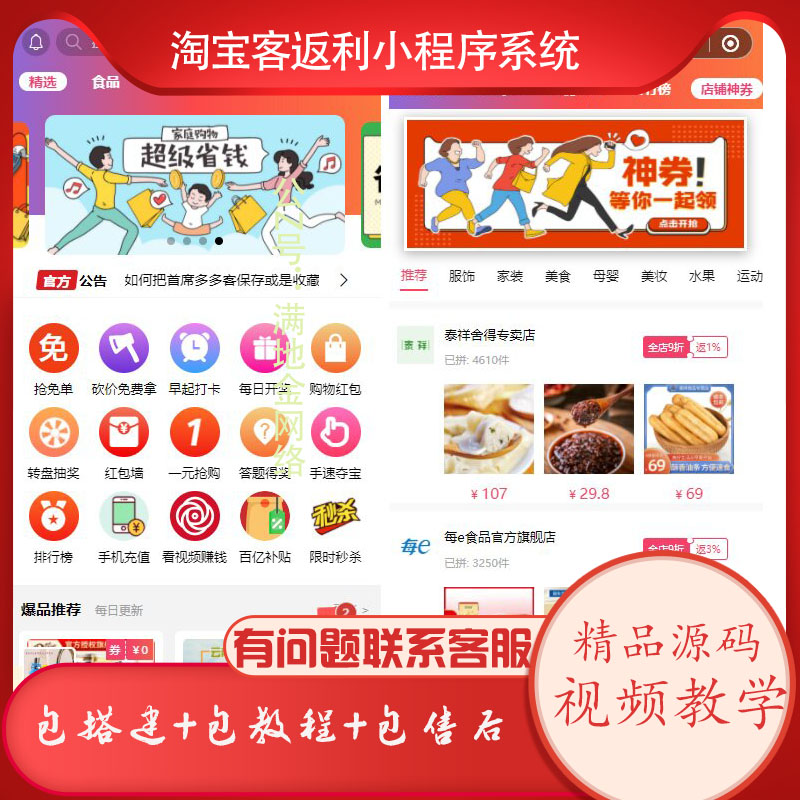 小程序淘宝客返佣金源码+详细搭建视频教程